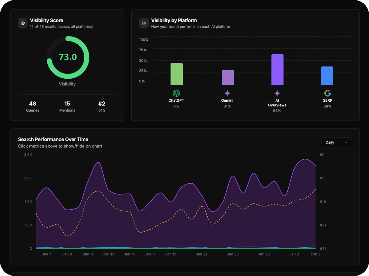 We help brands earn visibility across search, AI Overviews, and generative platforms.