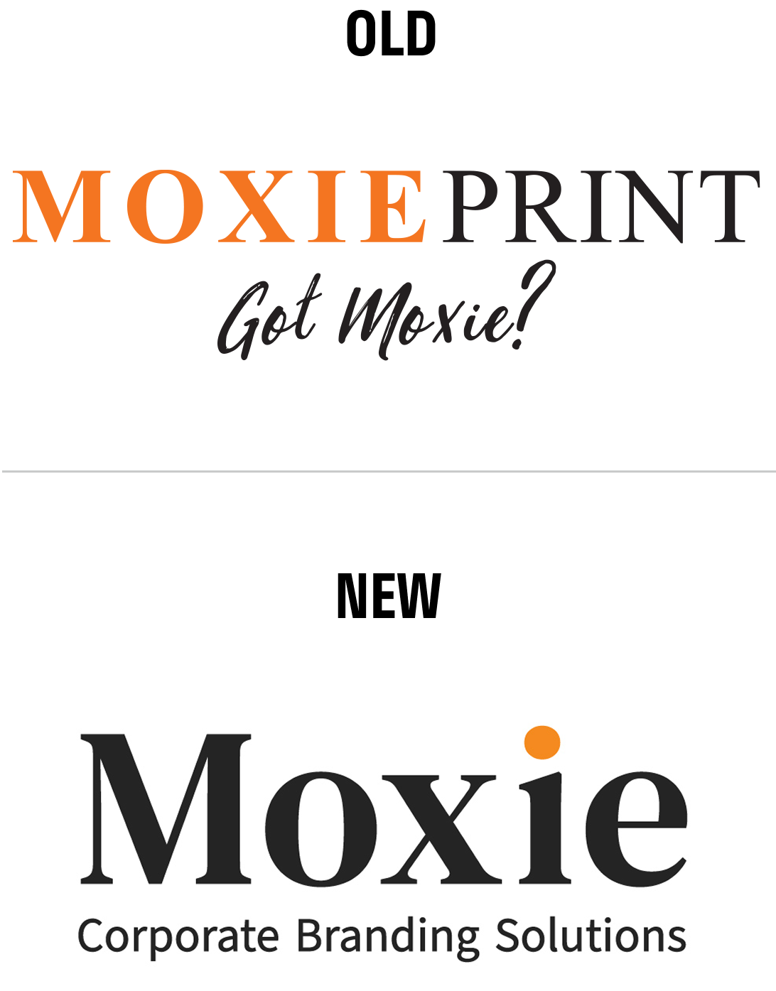 A critical step in the rebrand was the strategic decision to shorten the logo from Moxie Print to Moxie to help avoid any misperceptions that it is a print-only company. The addition of the “Corporate Branding Solutions” tagline lockup better communicates the full range of services Moxie provides and more accurately positions them as a comprehensive, one-stop shop for their target audience: larger corporate clients.