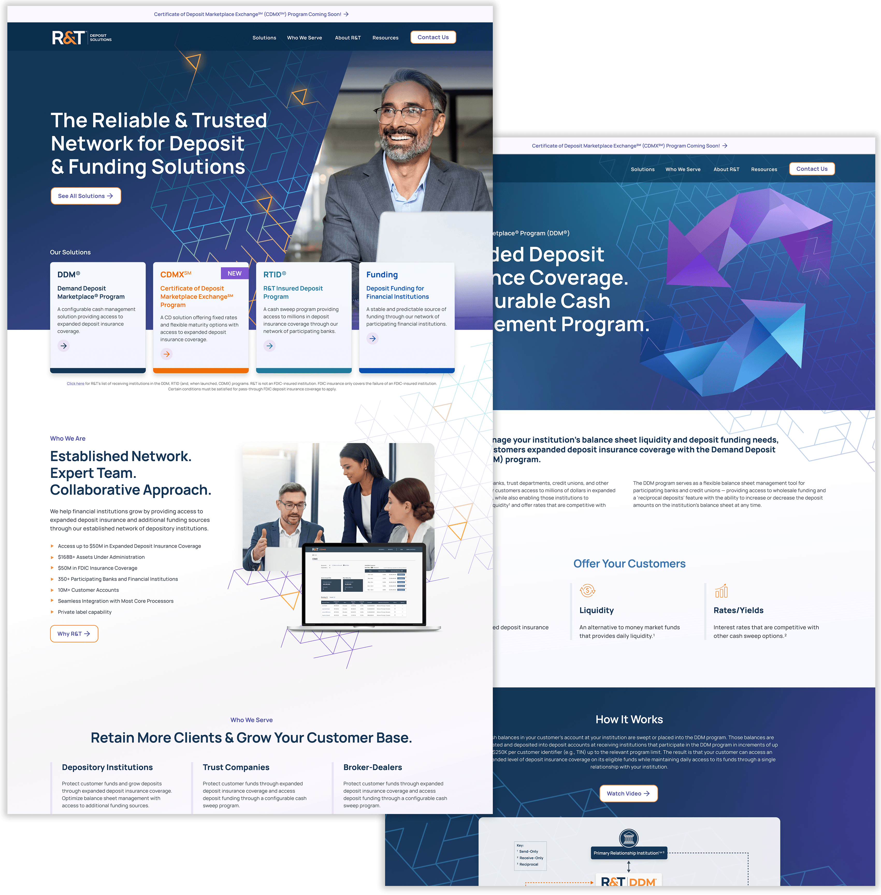 When an existing client merged with their former competitor, Ridge was brought in to help with the rebranding and launch of the new company, R&T Deposit Solutions.