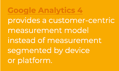 Formerly known as “App + Web,” Google Analytics 4 (GA4) is the next generation of web analytics that provides marketers with a solid foundation to measure customer behavior and track performance. GA4 is the ideal add-on to your current Google Analytics platform with its new reporting functions, enhanced features, and predictive insights.
