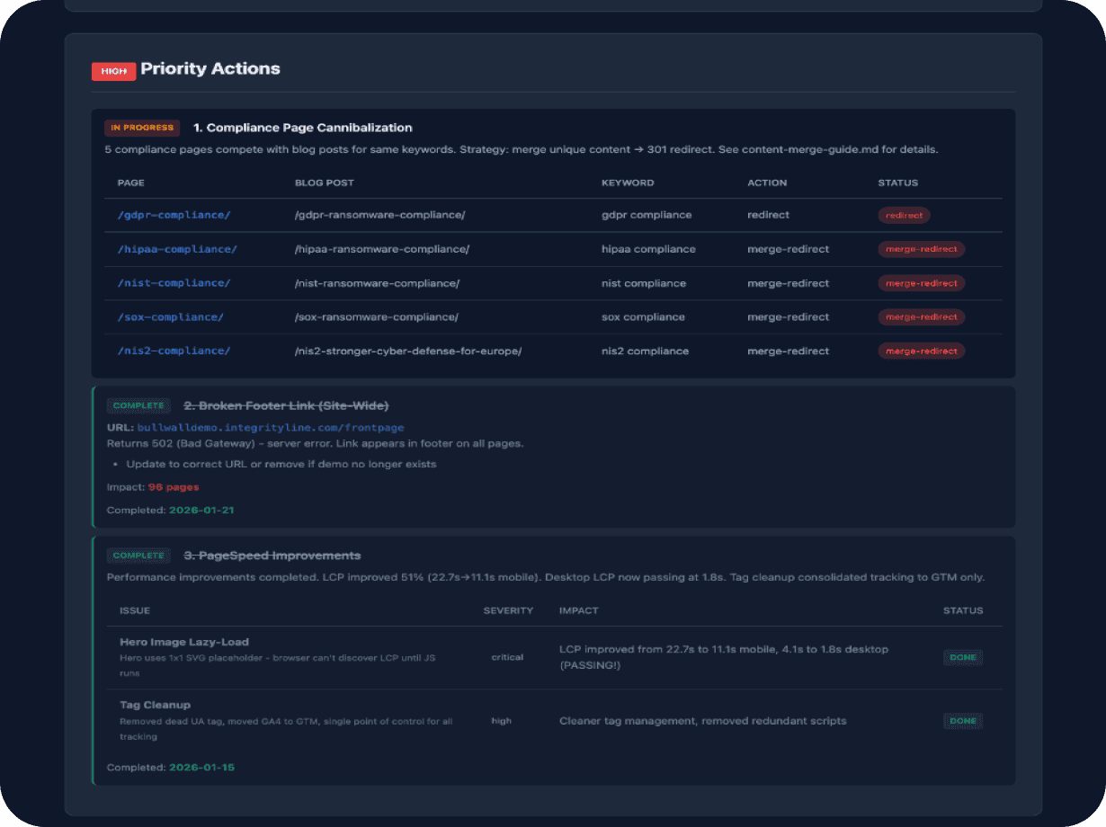 Our audit outlines the specific improvements required to drive meaningful gains in performance, structure, and content.